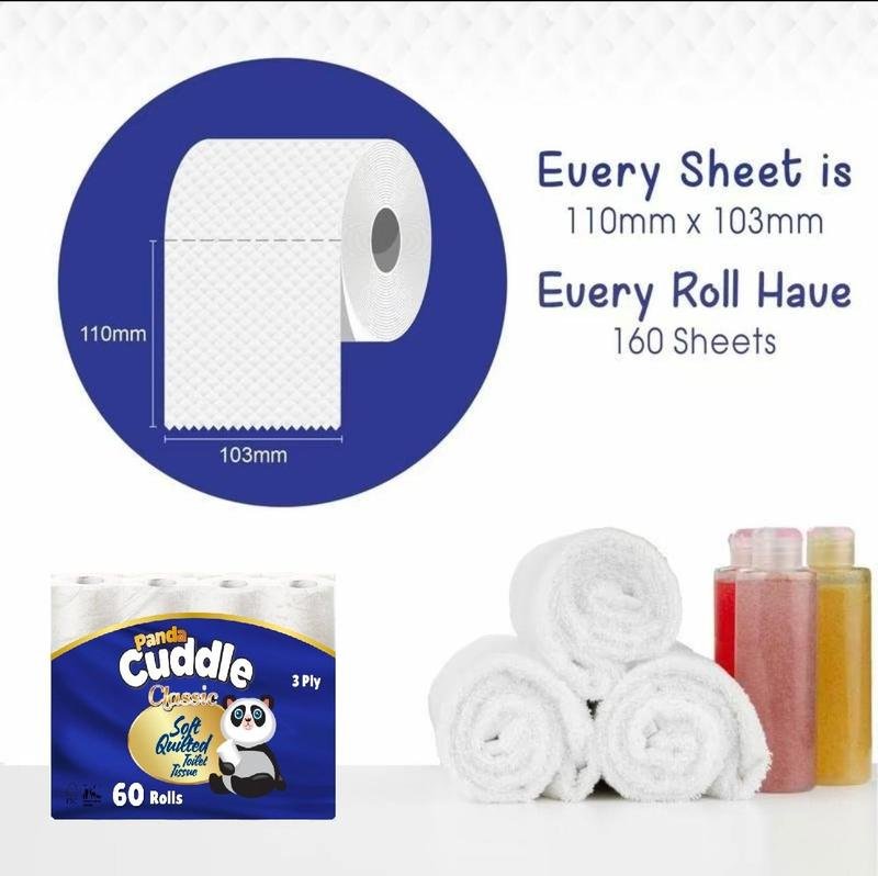 Made from pure virgin tissue. Luxuriously, soft, strong, and Reliable. Providing you with 132 sheets per roll and good quality material. These rolls work perfectly with a variety of common toilet paper stands. It is easy to fit in a toilet roll holder.|